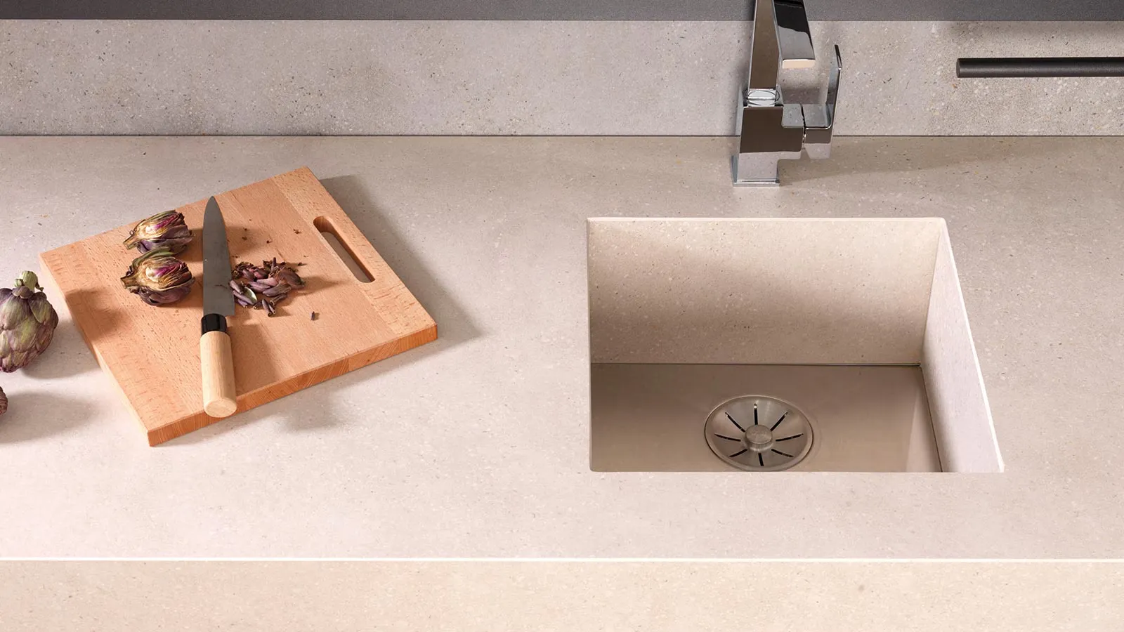 Légère et résistante aux rayures, la surface en porcelaine allie fonctionnalité et esthétisme