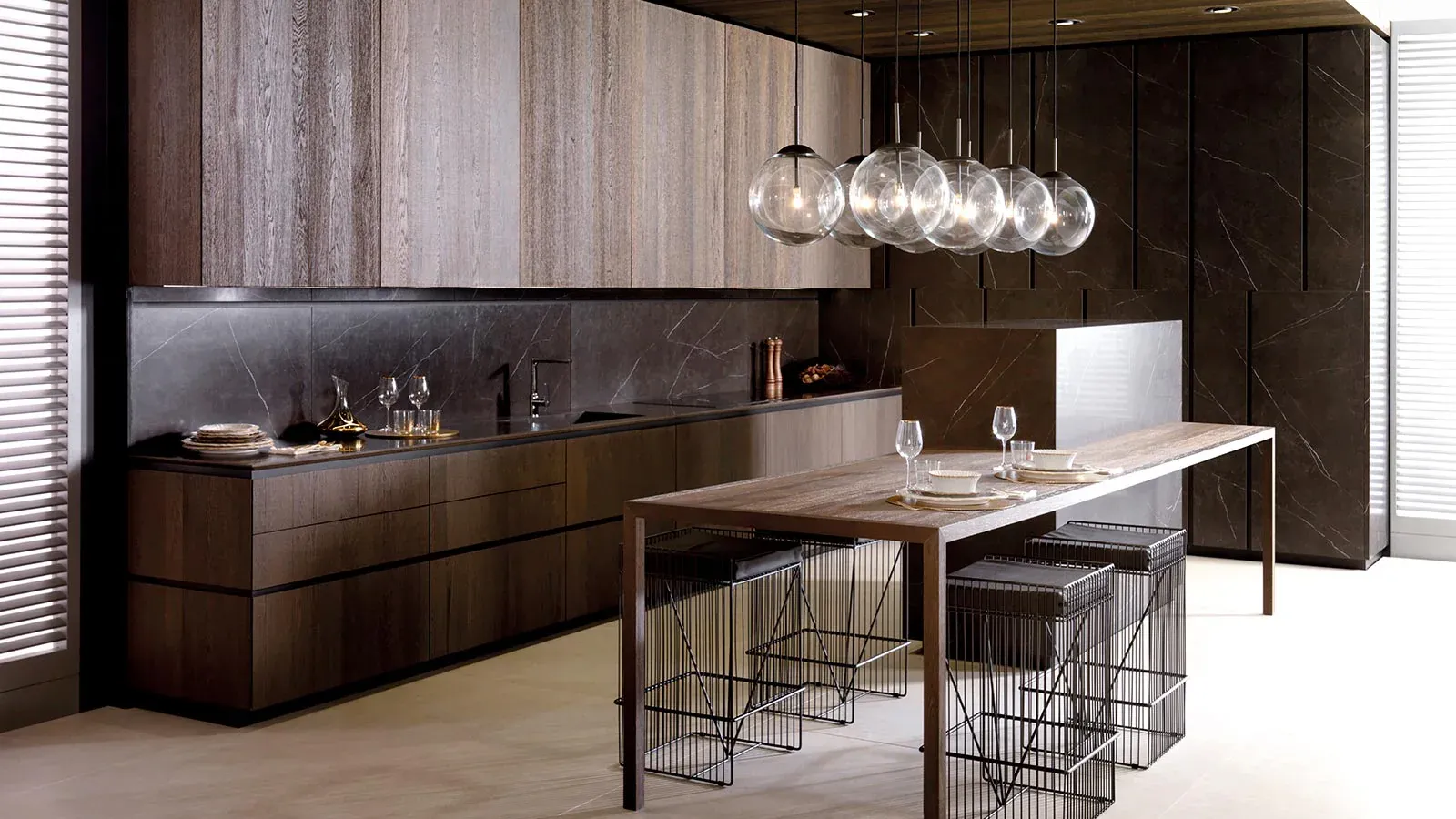 De nos jours, on peut fabriquer des carreaux de porcelaine de 240 cm x 120 cm. La largeur standard d’un plan de travail de cuisine étant de 60 cm, cela permet de créer facilement des surfaces sans jointures. Même pour les îlots et les tables de salle à manger, aucun joint n’est nécessaire, ce qui permet de créer des surfaces continues, garantissant une plus grande hygiène et un entretien minimal.