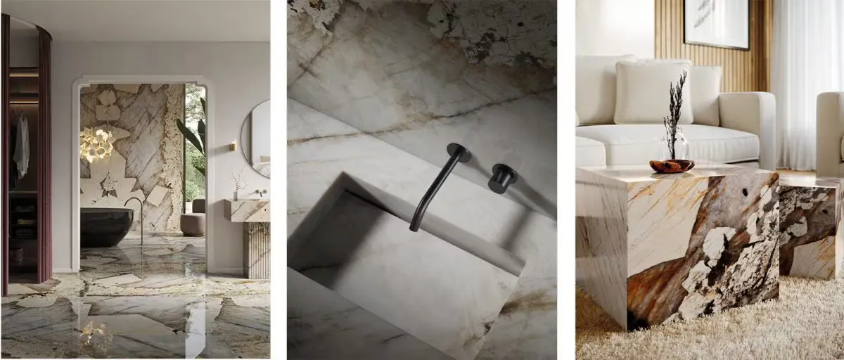 XTONE du groupe PORCELANOSA, spécialisé dans la céramique et la pierre naturelle grand format est chargé de sélectionner avec soin et minutie chacune des tranches qui sont distribuées, en choisissant uniquement celles qui vantent les caractéristiques et les vertus de ce type de pierre naturelle. L'EXCELLENCE de ces pièces uniques, exclusives et singulières ne peut être reflétée dans la céramique en raison de leurs caractéristiques particulières.