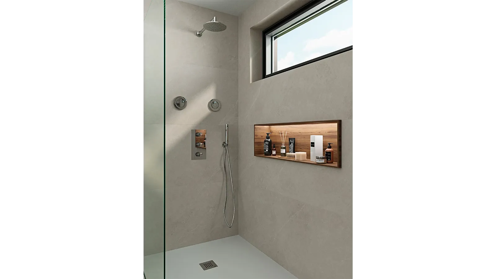 Une niche éclairée est idéale pour ajouter une touche d’élégance et de fonctionnalité à n’importe quelle salle de bains. Parmi les options possibles dans une niche de douche ou de baignoire, l’installation de LED permet de mettre en valeur les objets qui y sont placés.
