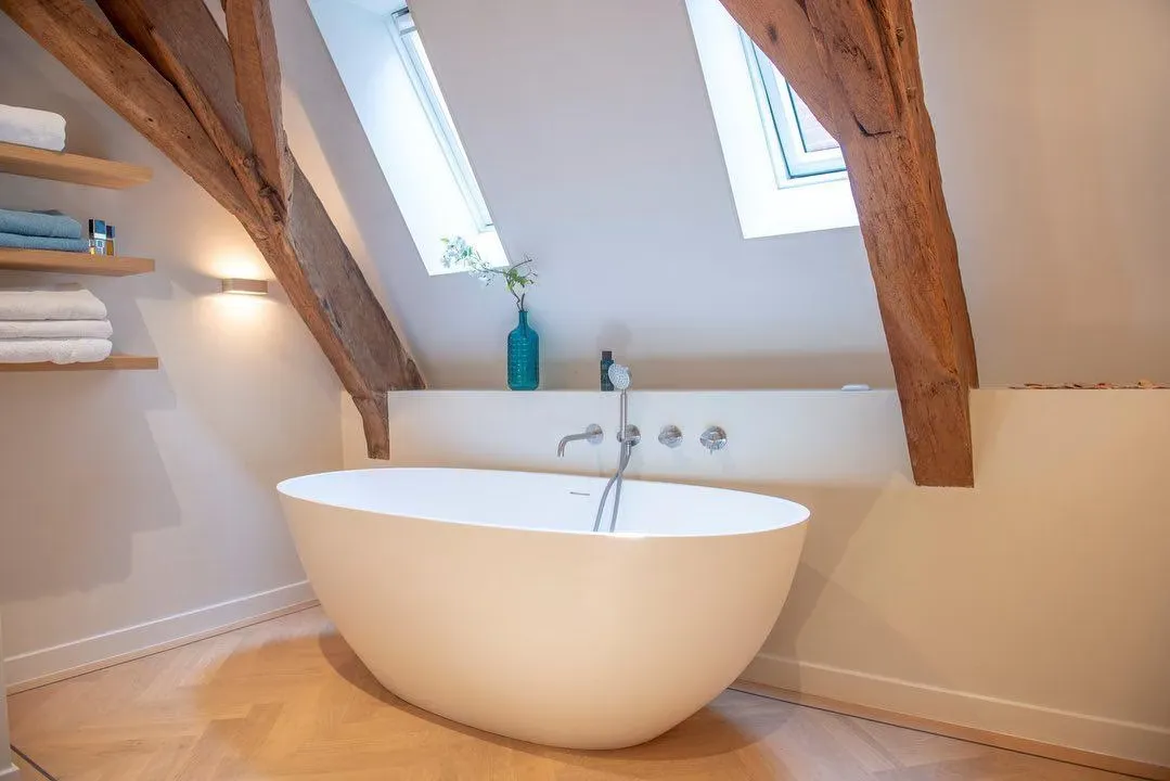 A sloped ceiling may seem like an interior design challenge at first glance. Nonetheless, this architectural feature offers so many possibilities that you will never get tired of it. Follow these tips to learn how to take advantage of the uniqueness of a bathroom with a sloping roof design and create an intimate and inviting space in your home.