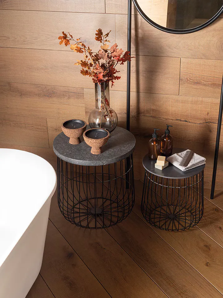 Nowadays, timber-effect porcelain floor tiles bring the advantages of wood flooring to the bathroom. The warm and organic qualities of timber help convert the family bathroom into a spa-like experience.