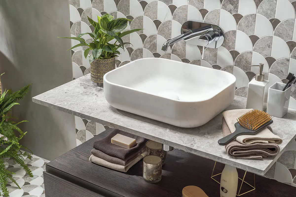 Still, the go-to materials for creating eye-catching bathrooms with mosaic tiles. Either option provides an unmatched range of colours, formats and designs that provide freedom to be creative in the bathroom. Both ceramic and porcelain are highly durable and offer optimum water resistance.