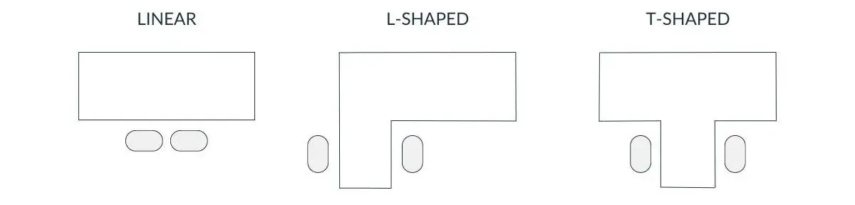 - T-Shaped, where the seating is configured symmetrically around the middle line of the kitchen island.