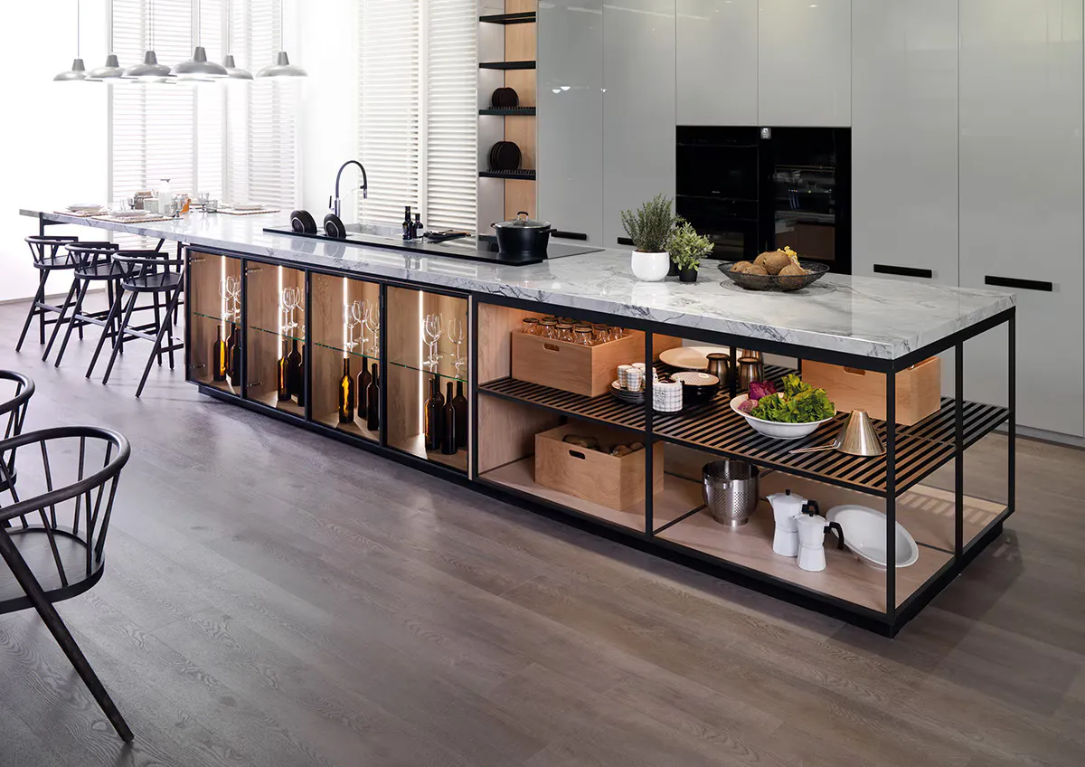 One of the functional advantages of the kitchen island is its storage capacity. There is never enough storage space in the typical kitchen, so the island provides a valuable resource. Kitchen utensils, waste, wine, crockery and more. In fact whatever needs to be kept to hand is easily accessible with the kitchen island.