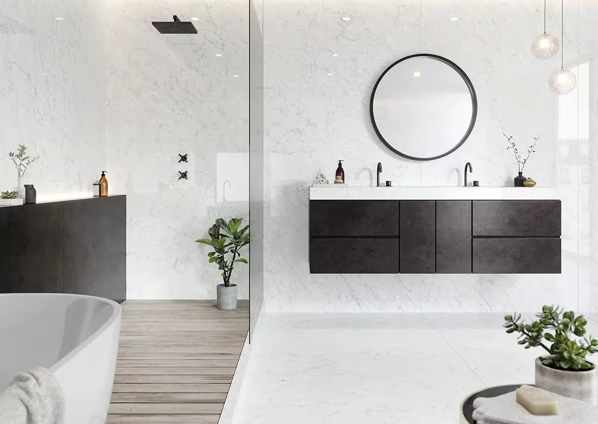 - A double vanity unit is highly recommended for practical and aesthetic reasons. The extra WHB in a family bathroom or an en-suite helps the flow when multiple people are using the bathroom simultaneously.
