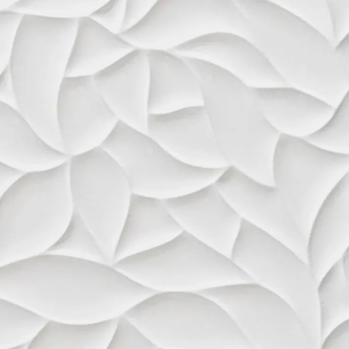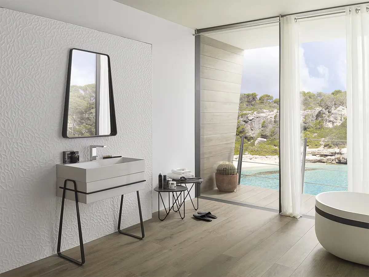 Tile texture impacts light reflection and how tiles are perceived. Pattern, on the other hand, is more superficial, but nonetheless just as impacting. Combining these two types of tiles, i.e. pattern for flooring and texture on walls, can create a nuanced and highly contemporary décor.