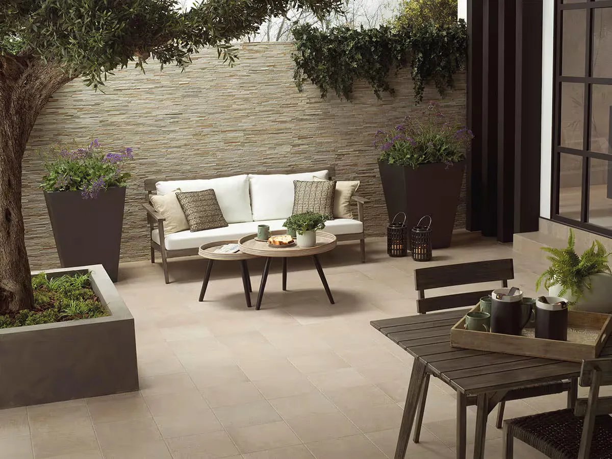 Porcelain is a versatile material that can imitate wood, stone, terracotta, and brick with remarkable precision. Besides, when used outdoors, it doesn’t come with the downsides of these materials. Why? Because porcelain is a super-dense type of ceramic that’s fired at extremely high temperatures.
