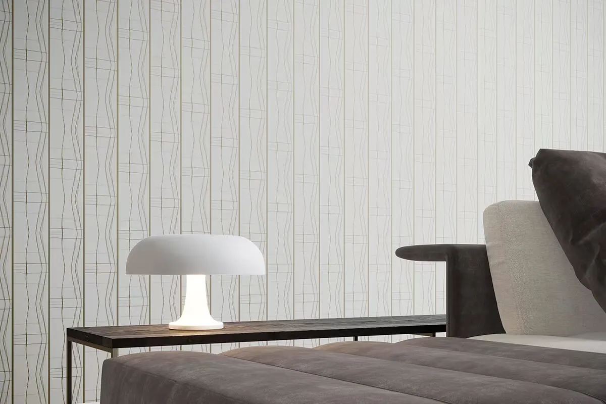 Depending on the size and colour, striped wallpaper can create a neutral backdrop or an impacting feature wall. That explains why the light and the dimensions of a room must be taken into consideration. While a hall or a dressing room can be bold, aim for neutrality in a living room or a kitchen.