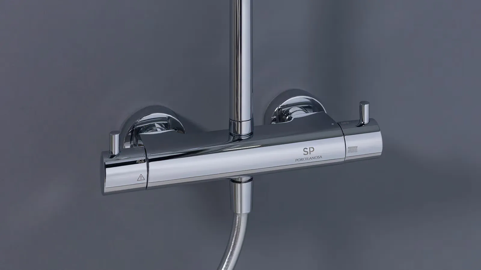 The Porcelanosa range of thermostatic taps combines elegance with performance. World renowned design studios including the Norman Foster & Partners have created collections such as the Tono range for Noken Porcelanosa Bathrooms that include the thermostatic control feature. Tono is a complete collection of bath, shower and washbasin taps that balance form and function expertly. Or the Tec Round line of taps with its minimalist rounded profile and lever control that makes a powerful design statement in the bathroom. The Pure Line collection is a range of taps including an intuitive push button action and refined silhouette. And for fans of robust, geometric design the Tec Square collection is inspired by a cubic aesthetic.