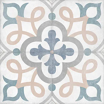 Add patterns in washed-out tones that look almost vintage to create a hyper-modern way to showcase pastels. The floral motifs are kept in check by the pastel colour which makes them suitable for an entire floor for bathrooms or kitchens.