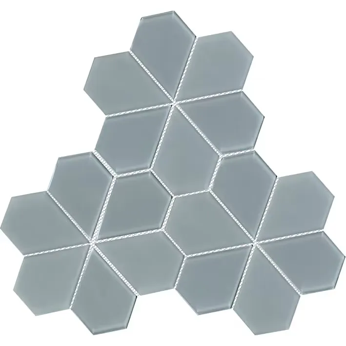 Add a geometric feature panel to a bathroom wall or kitchen backsplash. This stylised tear-drop shape forms an octagonal figure in a faceted spiral pattern in a glass pastel shade. The reflective finish with the softer colour palette provides a totally different take on these softer shades.