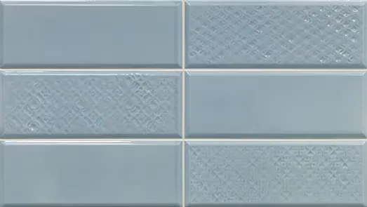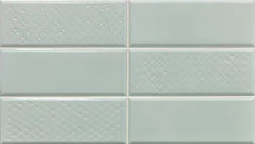 A more contemporary approach to pastel tiles is to combine them with textures, in a three-dimensional effect. Bevelled edges, and textured relief alternated with plain surfaces in pastel shades like light green and grey-blue.