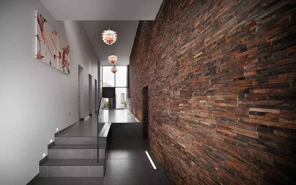 Accent walls in key locations around the home help to define public and private areas and establish a hierarchy. The entrance hall is a great location to capitalise on the advantages of split face tiles. Especially when combined with a porcelain or slate effect flooring. Not only will the walls be protected but the overall look will inspire confidence and distinction.