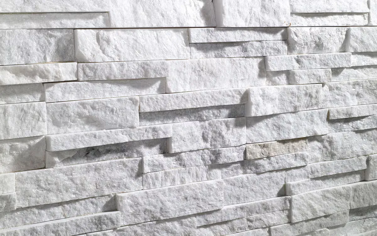 When featured in a small room, white natural stone opens out the space, adding visual dimension. In a dark kitchen, the white split tile brings the space alive.
