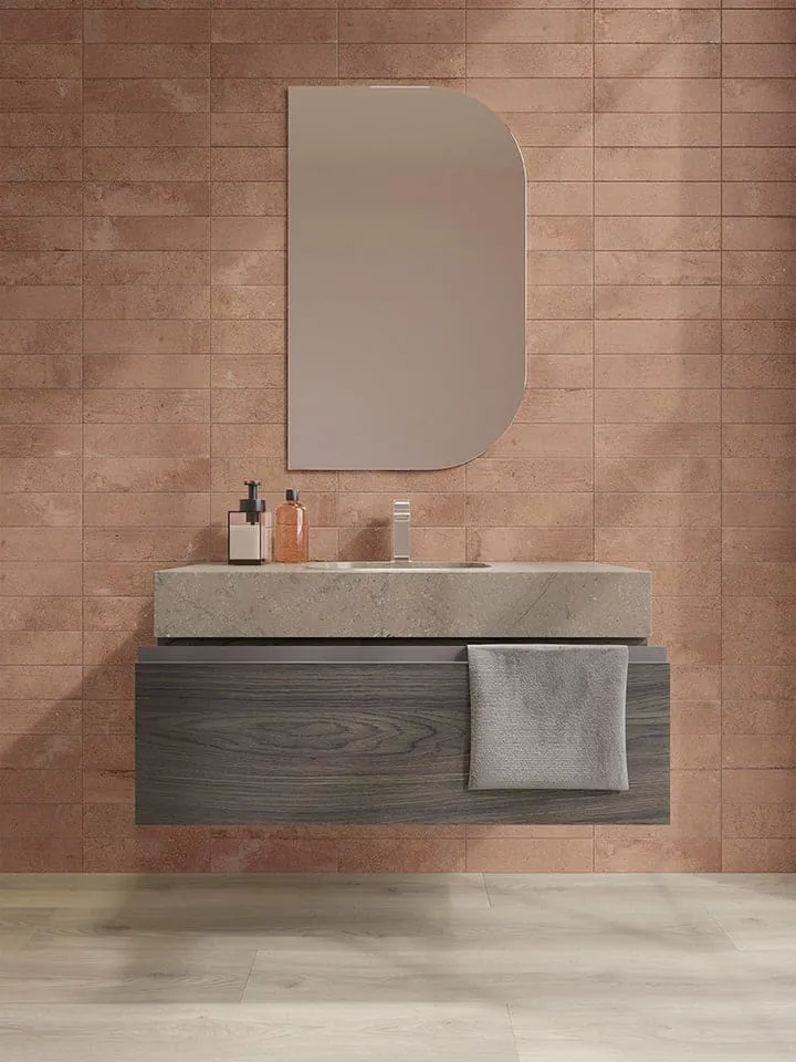 Traditionally, the use of terracotta in bathrooms was confined to floors. And these terracotta floor tiles would have had to be sealed and protected from the humid environment. Now, however, with terracotta effect porcelain tiles, the beauty and warmth of terracotta are practical and transformative.