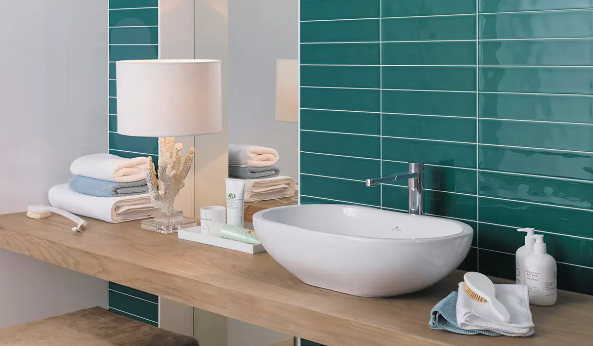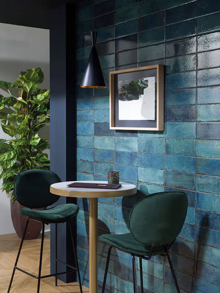 As a rule, the deeper colour shades tend to be moodier and more dramatic on walls. This quality is important if you want to create a more impacting décor. For spaces with a lot of natural daylight, the look can be warm and characterful. Teal is a very versatile colour; traditional style tiles can look contemporary and modern tiles look warmer in teal.