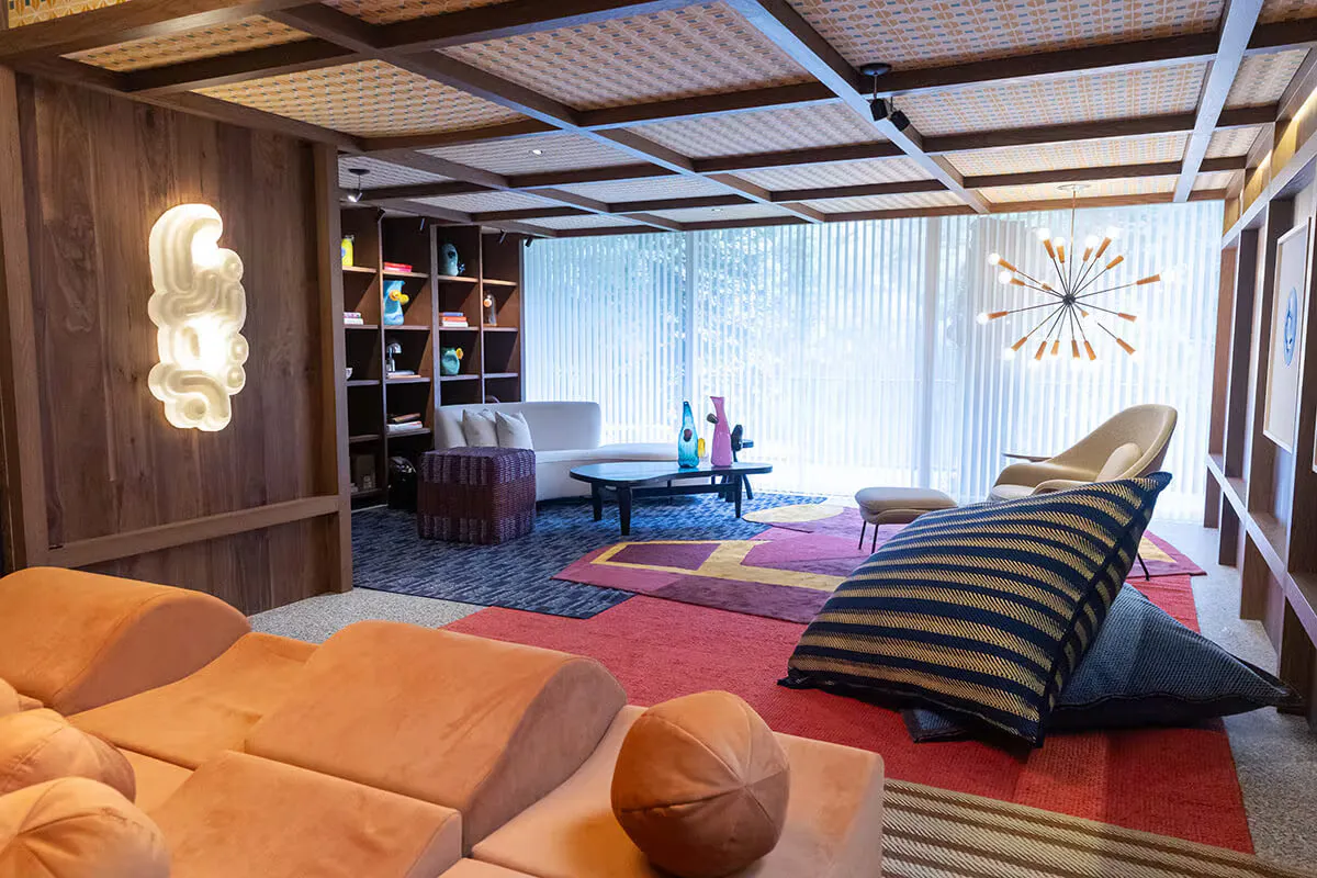 María Rubio, from Espacio Tangible, presents a room inspired by mid-century aesthetics, with nostalgic touches that take as a reference iconic films such as A Clockwork Orange or the artistic vision of Wes Anderson.