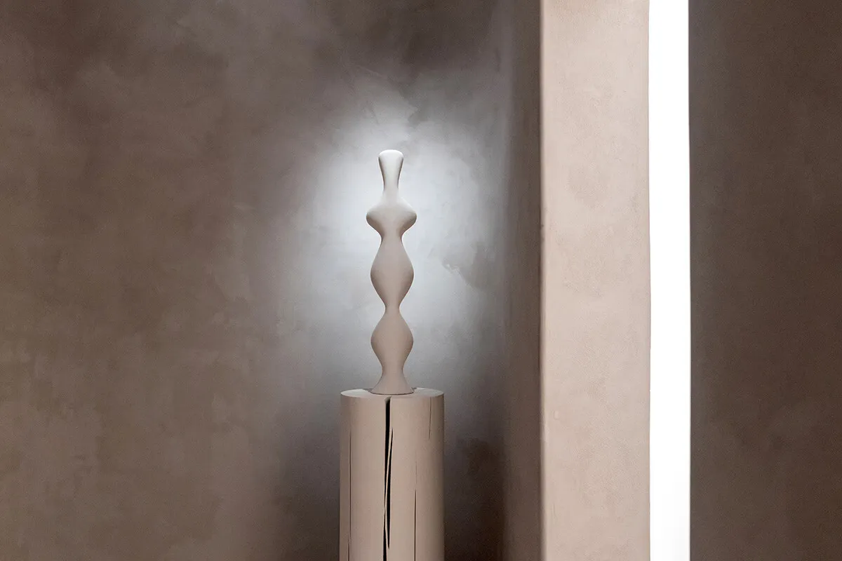 In the bedroom and bathroom designed by the studio, the materials Alluslate®Materica by Krion® and XTONE Alpinus White, by Porcelanosa, act as canvases on which ancestral influences are projected. The design seeks a balance between the ancient and the modern, creating a timeless ambiance.