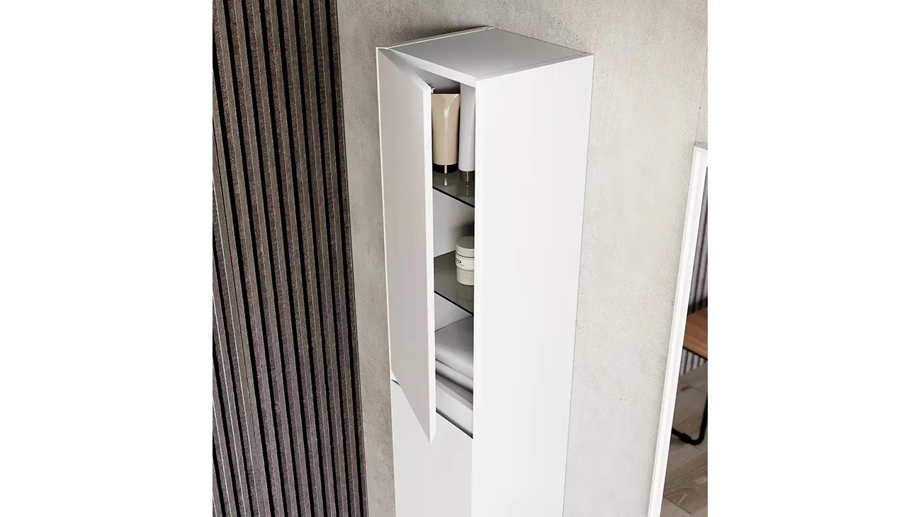 The new Ner column stands out from the rest, thanks to its striking height (32 cm x 159 cm). Plus, the reversible design comes with black-tinted glass shelves to match the interior.