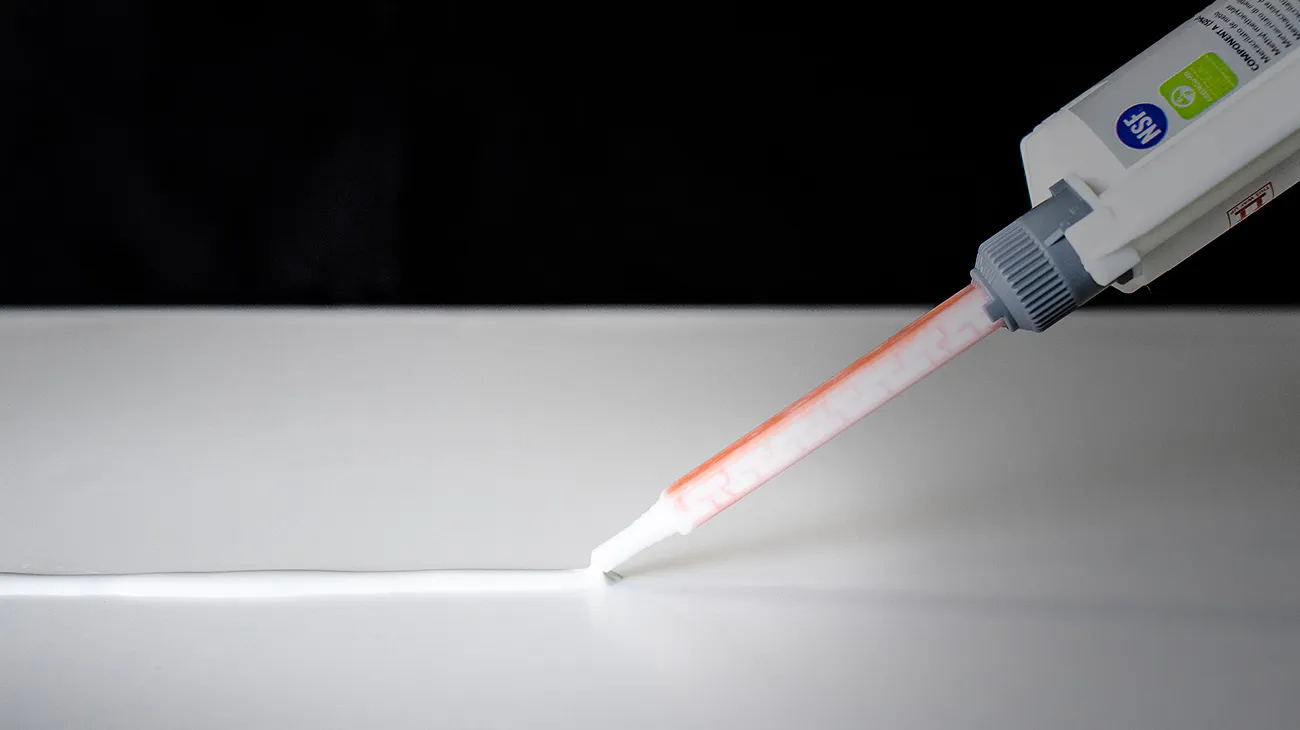 Krion has added a new adhesive for colored Krion® K · Life 1100, with a specially developed formulation to reduce curing times. This new binding agent comes in 50 ml and 250 ml cartridges, making it easier to use in vertical applications. Plus, it works perfectly in locations or projects requiring faster curing times due to their nature or weather conditions.