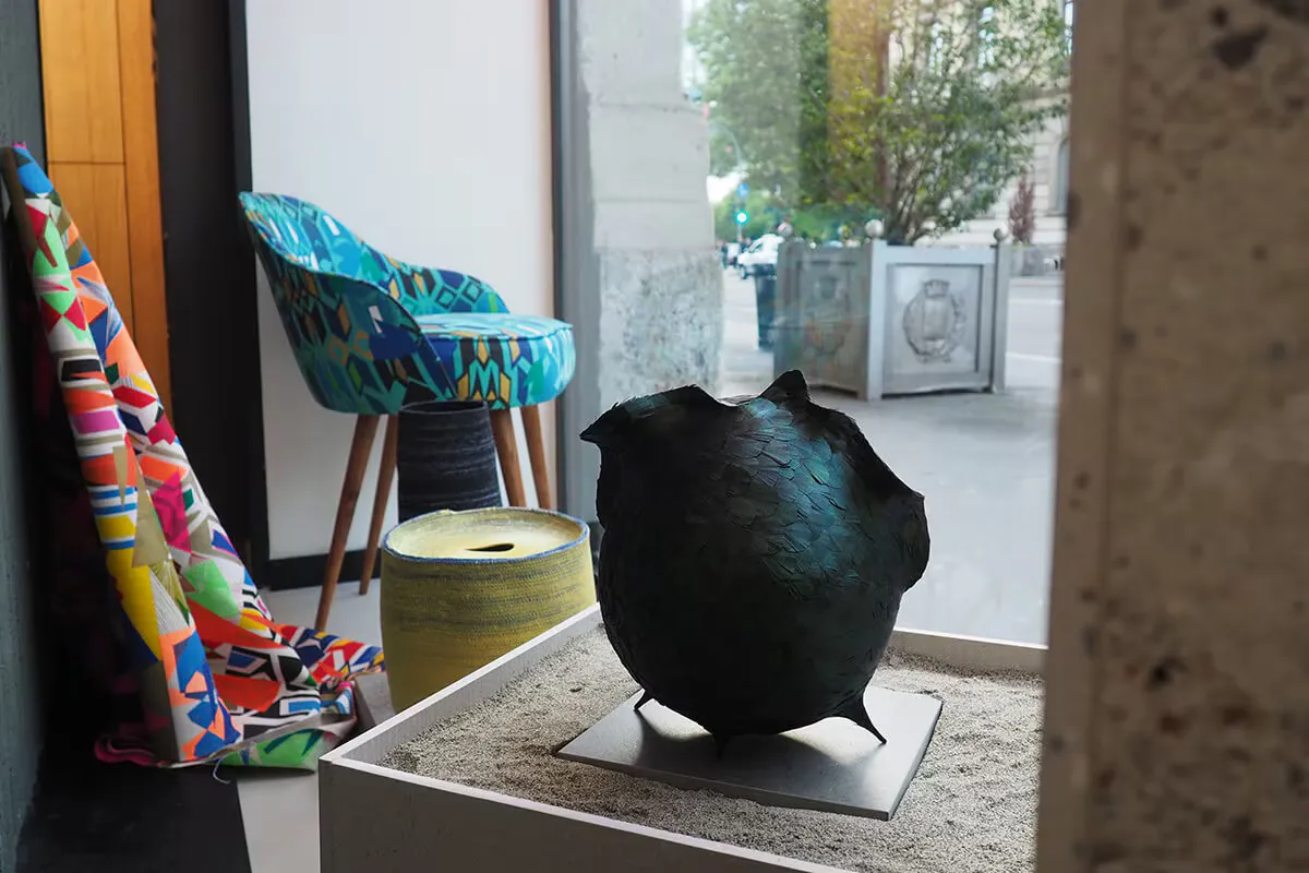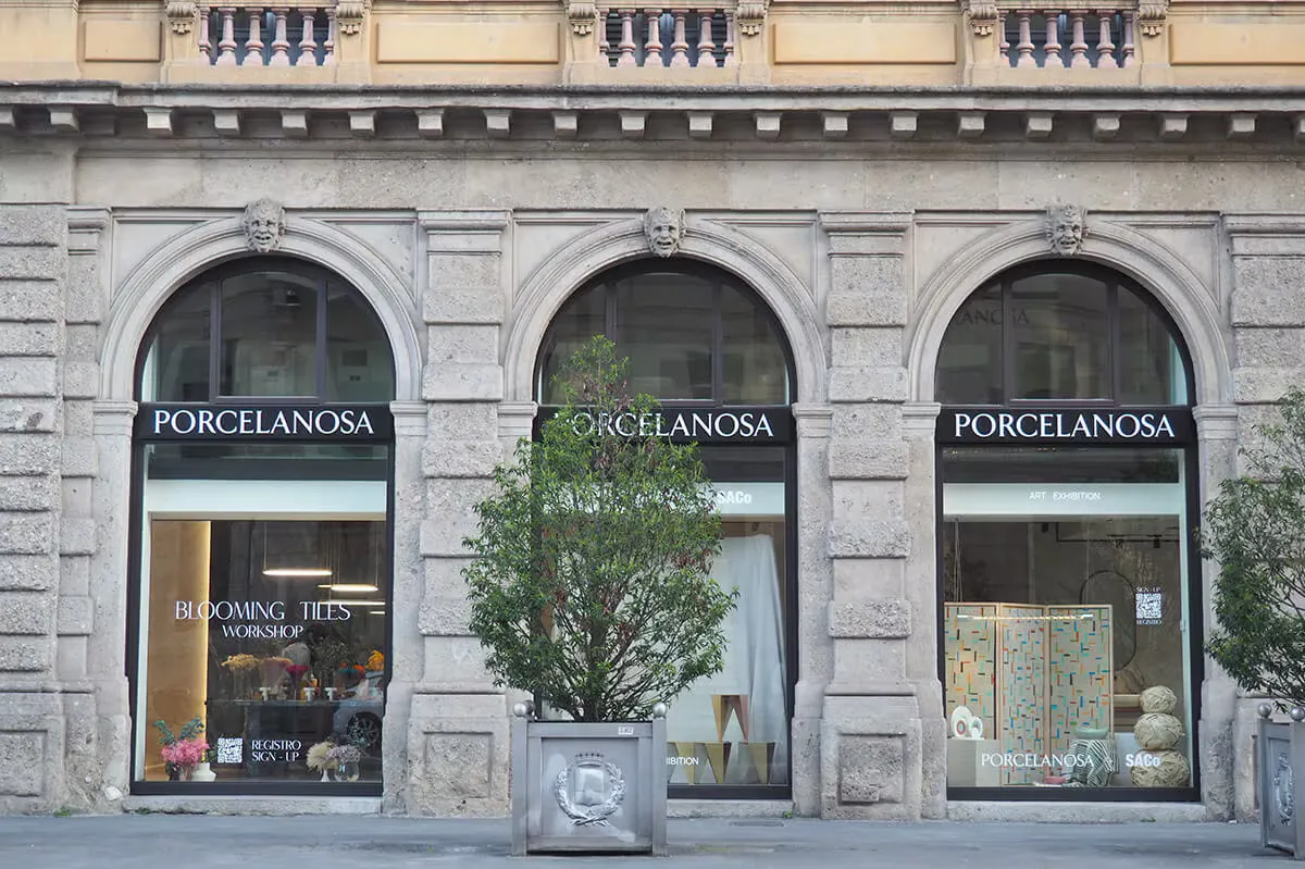 The store windows of the Piazza Castello store welcomed the creativity and ingenuity of twenty-four renowned contemporary artisans through a selection of works surrounded by the most innovative materials of Porcelanosa Group firms.