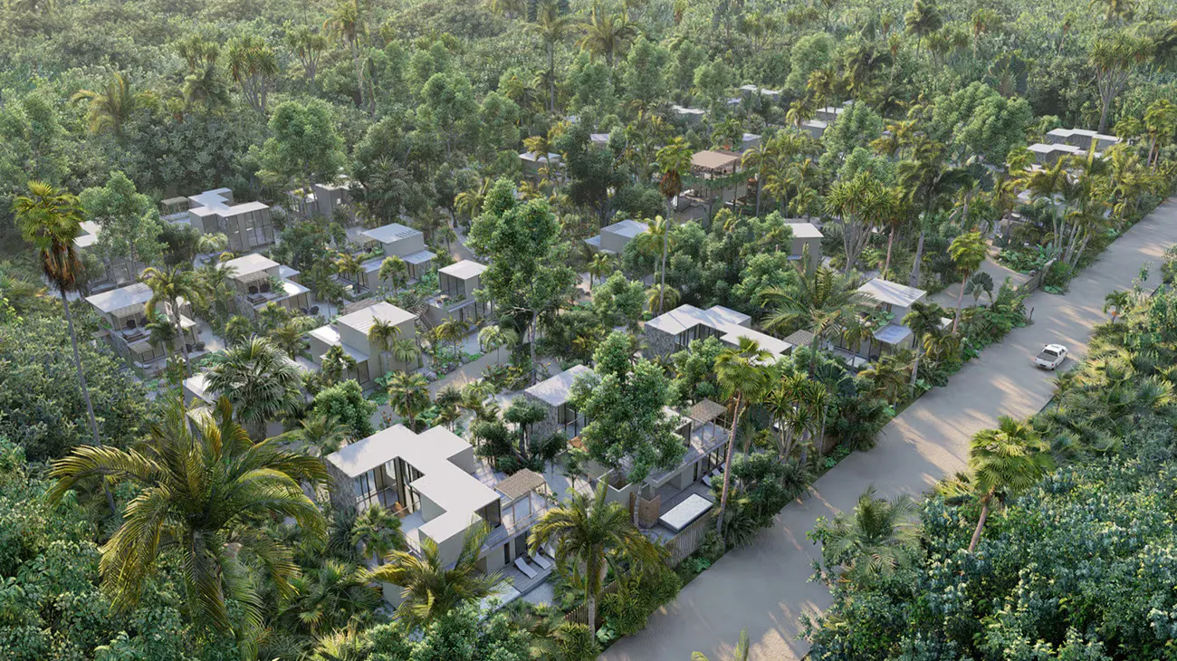 Located in the heart of the Selva Maya, this eco-friendly resort has been built under the principles of sustainability and comfort. An exclusive residential complex made up of 36 sustainable homes with 75% green spaces. Xunkari is integrated into the landscape through the use of local and sustainable materials such as wood and stone. Elements which, together with Porcelanosa’s ceramic tiles, allow us to take a step back from urban chaos and invite us to relax.