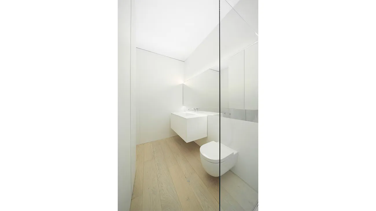 The interior design and distribution of the rooms in NIU HOUSES are in complete harmony with the architectural project’s concept. The bathroom’s interior designtransmits a clean, modern and light image, thanks to the white elements, such as the Krion® Solid washbasins and the Acro Compact (Noken) wall-mounted toilets.