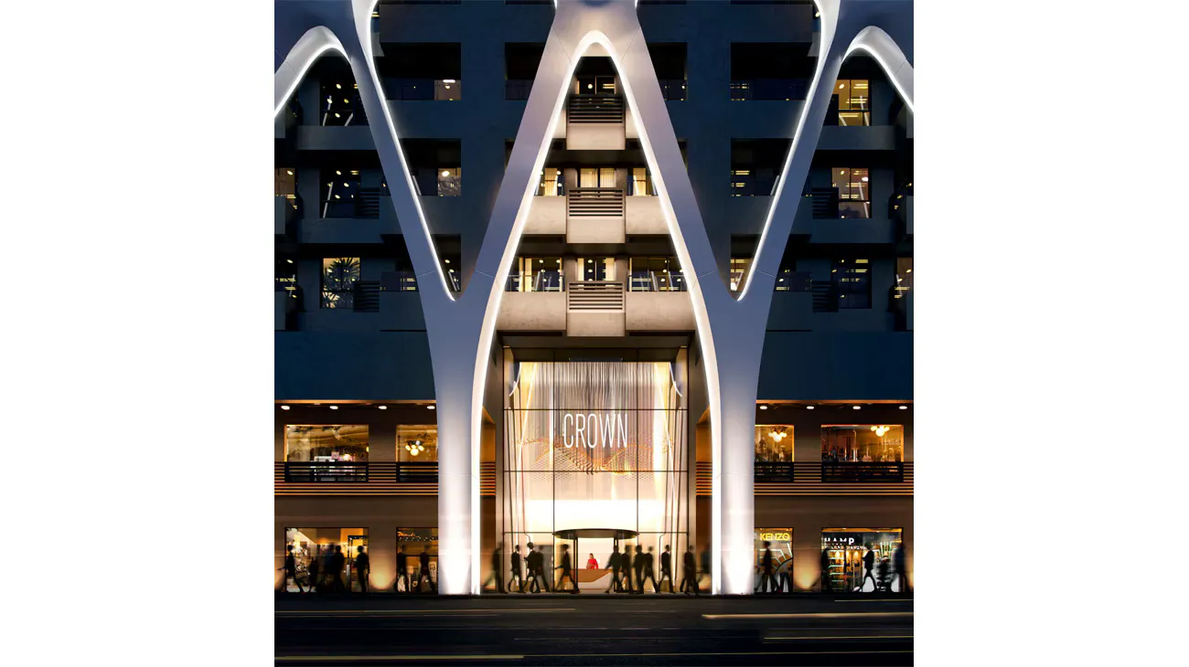 Without a doubt, however, The Crown’s distinguishing feature is its spectacular façade. A white outer structure is defined by fluid, sinuous forms that frame the entire volume of the building and, as a whole, form the unique “crown” that gives it its name.