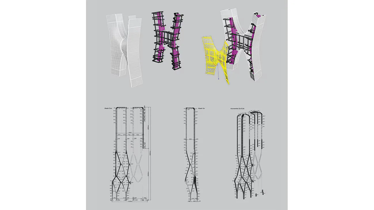 The striking external composition is made up of 250 knot modules, straight lines, diagonals and corners, shaped by different molds. To ensure the success of this proposal, a 1:1 scale prototype of a 4 m x 4.5 m double curvature knot piece was built at Butech’s premises during the preparation phase. The internal structure of the façade, the fastening systems and the design of the industrialized modules were solved by Butech architects and façade engineers.